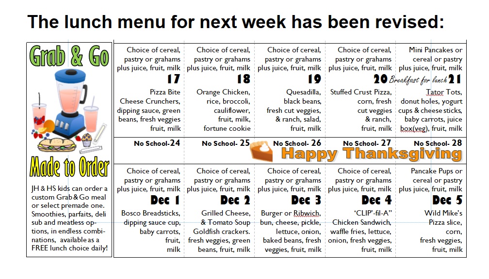 November Lunch Menu Just a reminder: *School meals, breakfast